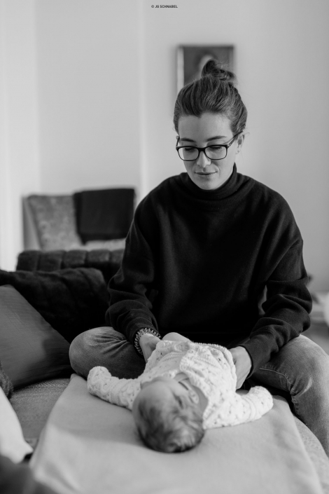 Die Münchner Osteopathin Anna Siebourg behandelt Mutter und Kind in Hausbesuchen: Shooting für ihre neue Website (ausgewählte Motive). Fotograf: Jens-Gerhard Schnabel.